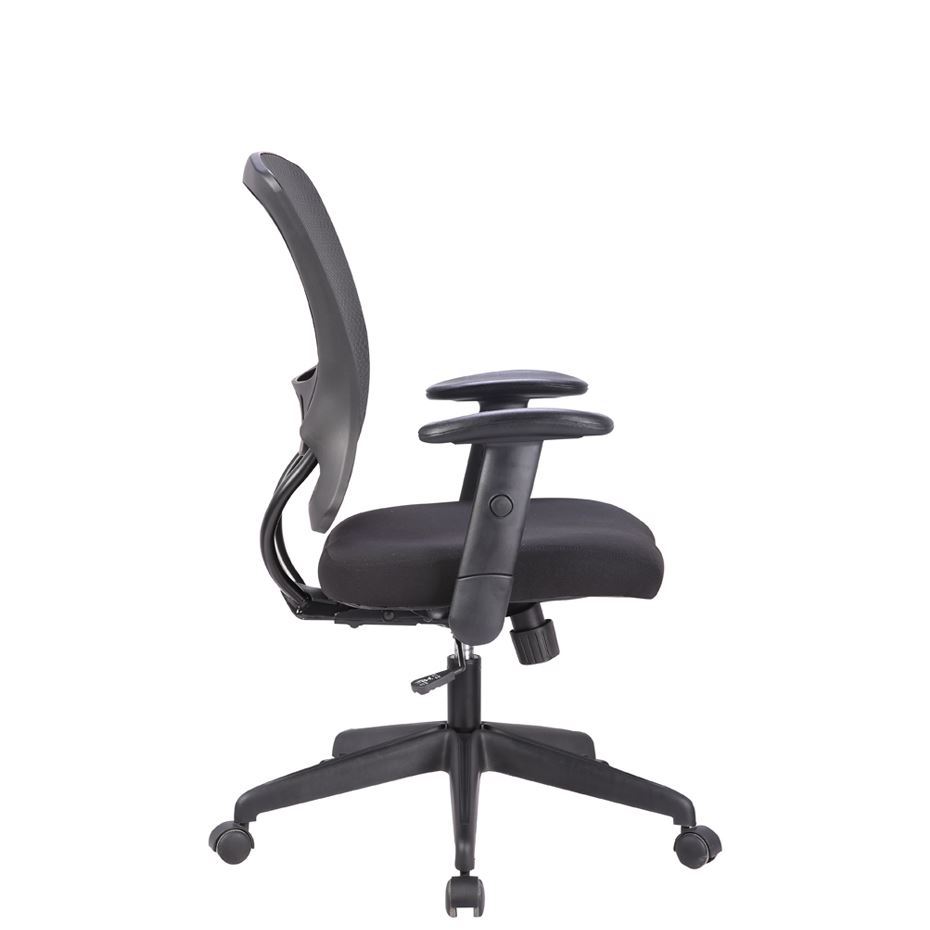 Thick, padded stain resistant upholstered seat cushion, Built-in lumbar support, padded arm rests and heavy duty, oversize carpet casters.