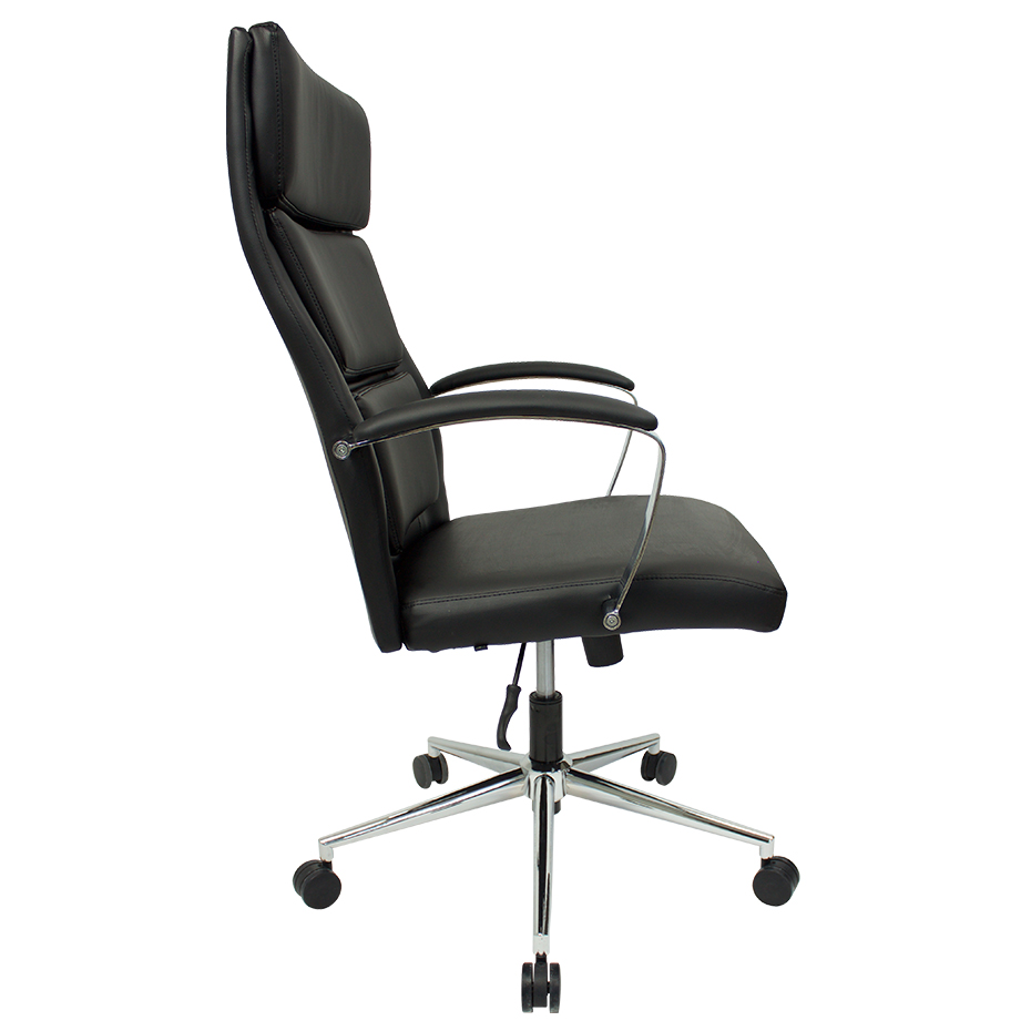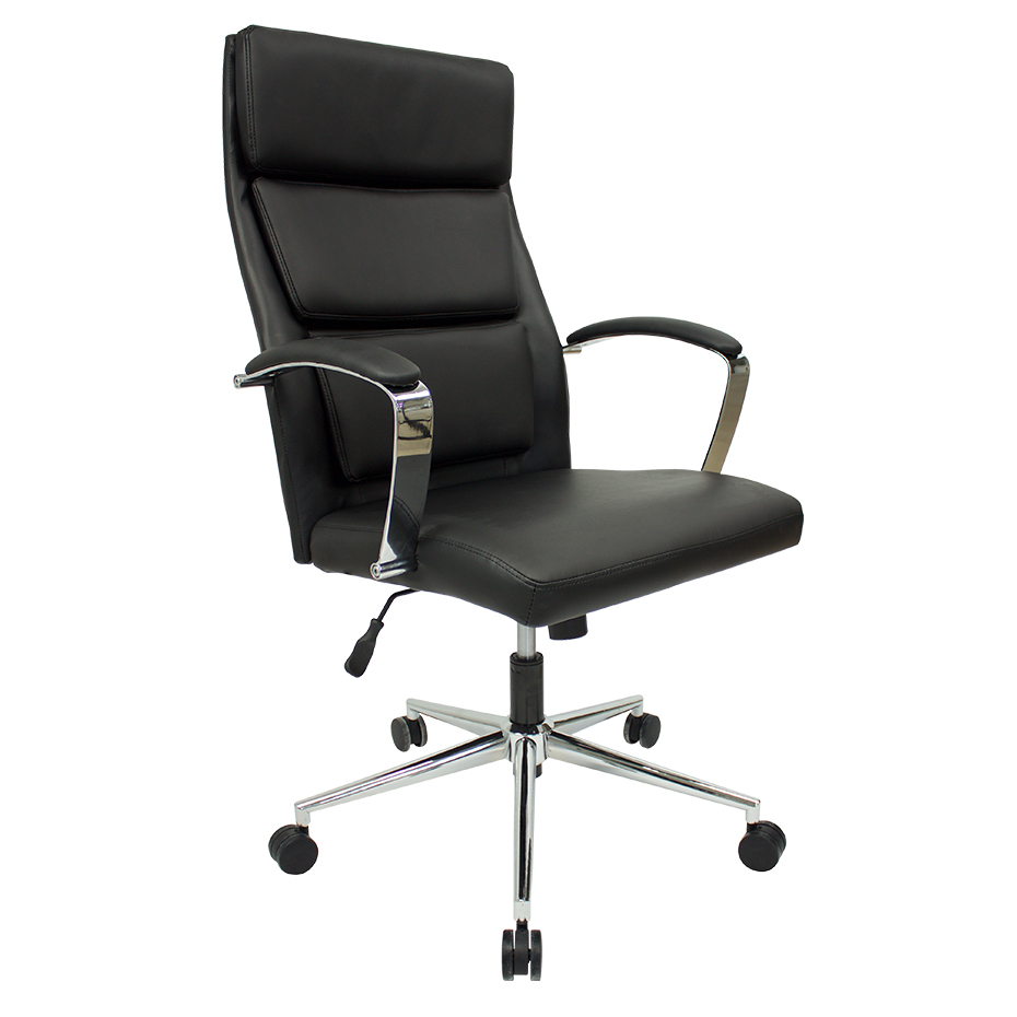 Polished aluminum base, polished/padded loop arms and segmented padded back all add to the upscale look of this modern Executive chair.